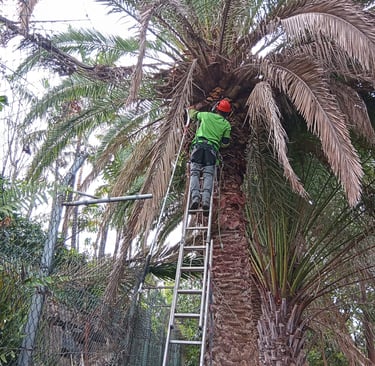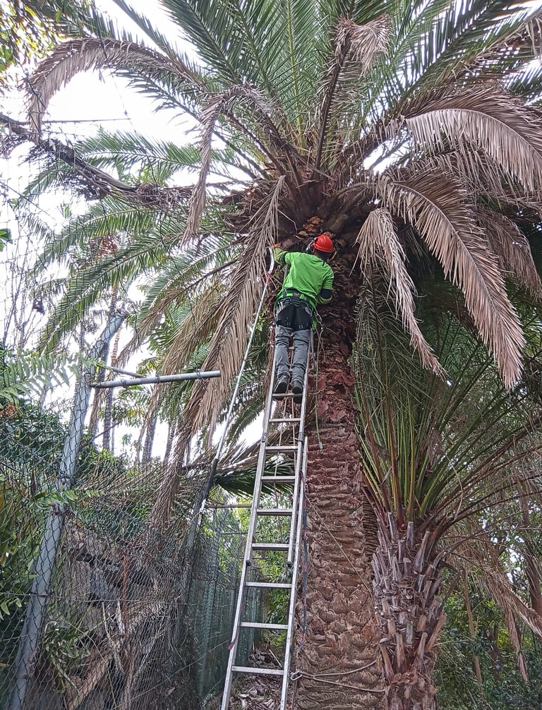 Un servicio de mantenimiento de árboles y palmeras, especializado en trabajos de altura.